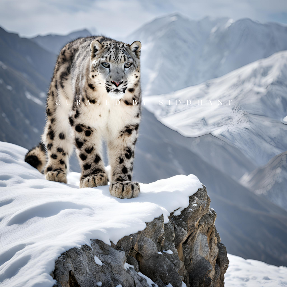 This image shows the "Ghost of the Mountain" roaming on snowcapped peaks. This image can be used for any print-on-demand, portraits, or any other platform where digital products can be used to create something, but reselling this image is not allowed. This image is AI generated.